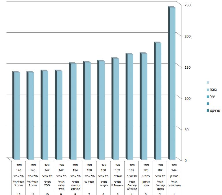 במקום השישי מגדל הקריה תל אביב 158מטר,במקום השביעי מגדל W תל אביב 156מטר