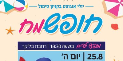 25.8 יום ה' בשעה 18:30 ברחבת בליקר בייקרי מופע סהילדים החינוכי לזהירות בדרכים "חיפזון וזהירון".
