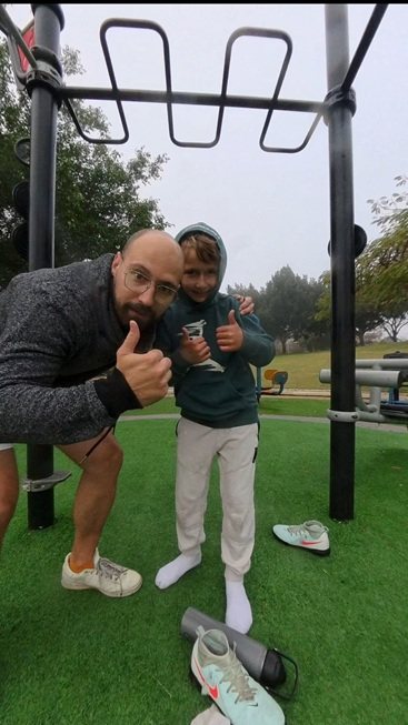 האבא דניאל מספר: "הבן שלי ביצע לאחרונה dead hang – תליה סטטית על מתח, ללא תזוזה – למשך 10 דקות ו-18 שניות. מדובר בהישג מדהים בכל קנה מידה – ובפרט כשמדובר בילד בן שמונה בלבד.