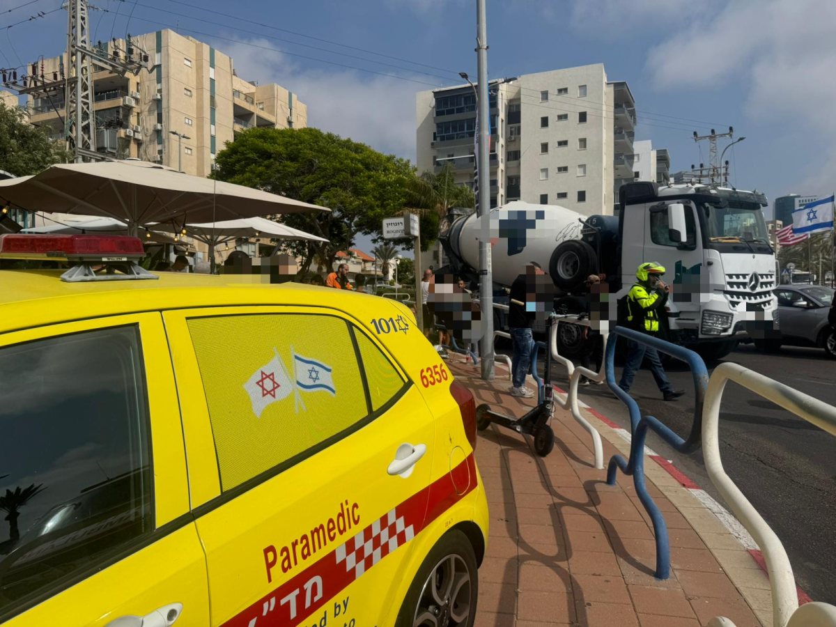 מערבל בטון פגע ברוכב אופניים חשמליים - מצבו בינוני עד קשה