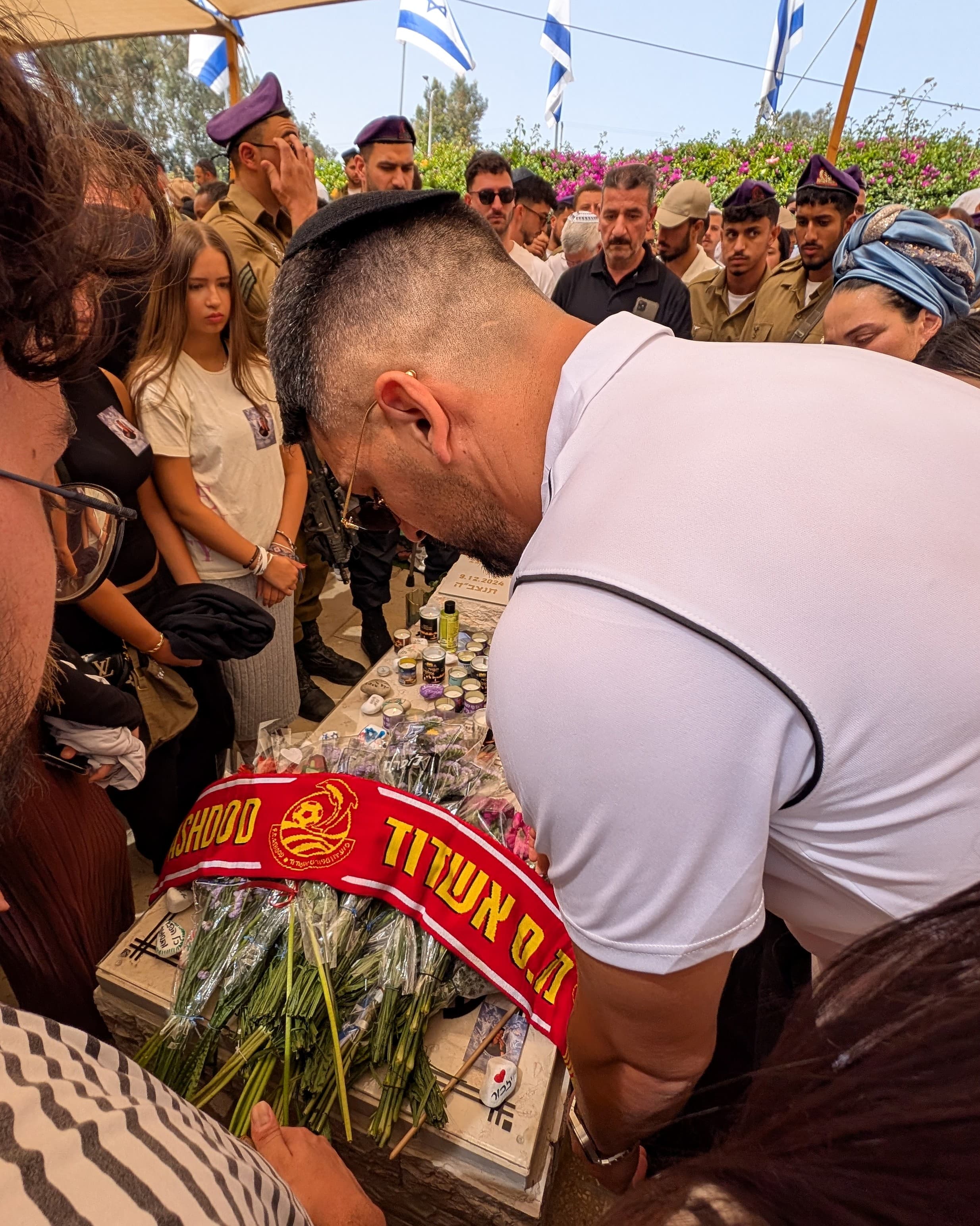 השחקנים ונציגי המועדון נכחו בטקס שנערך במקום, פגשו את משפחתו וחבריו של הגיבור, ויחד הניחו על קברו חולצה וצעיף לזכרו. עמרי, בן 19 בנופלו, היה לוחם בגדוד שקד של חטיבת גבעתי. הוא נהרג בדצמבר 2024 בצפון רצועת עזה, לאחר שנפגע מטיל נ״ט. חברו ליציע של עמרי שיתף אותנו לאחר נפילתו: "אחד הרגעים הזכורים שלי איתו באצטדיון הי"א היה במשחק ההישארות נגד הפועל חיפה.