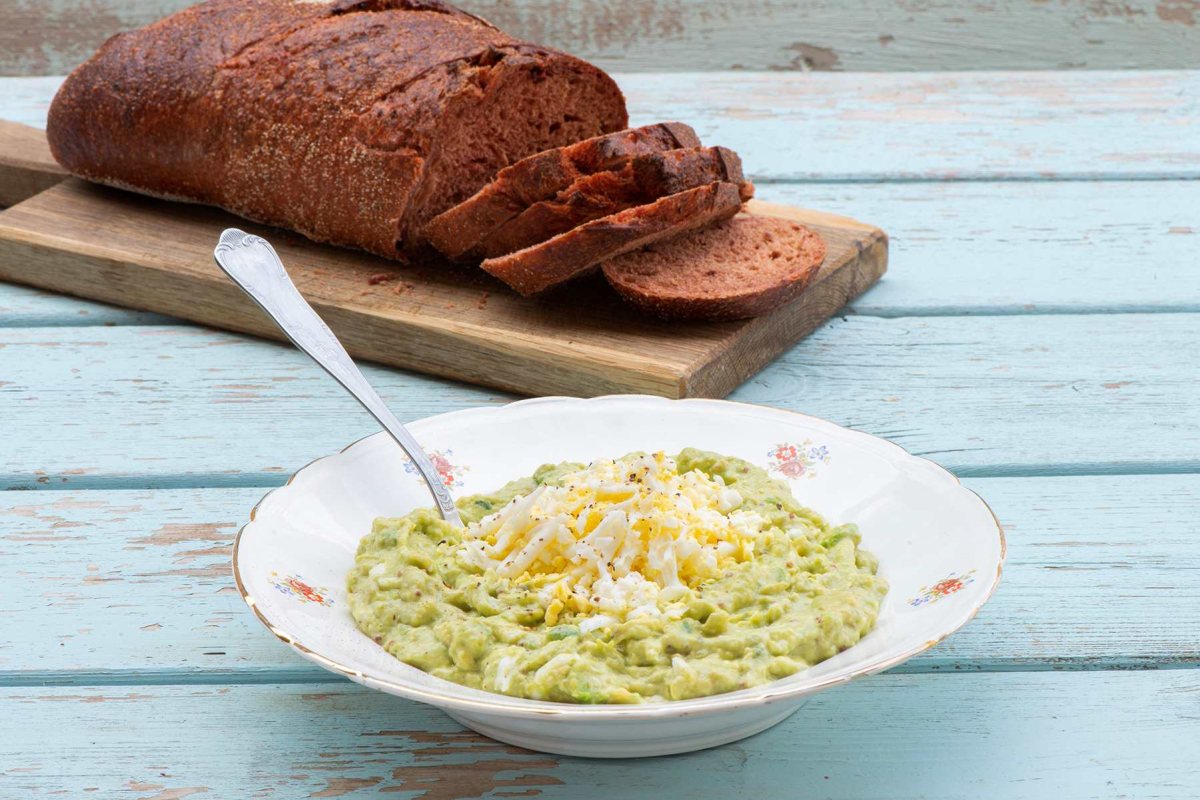 מצרכים (לכ-2-3 מנות): 2 אבוקדו מוכנים לאכילה של "חקלאי גרנות" 1 כפית חרדל רגיל או גרגרים 2 כפיות מיץ לימון סחוט טרי 2 ביצים קשות מגוררות בפומפייה מלח ופלפל שחור גרוס לפי הטעם אופן ההכנה: 1. בקערה מועכים את האבוקדו עד למרקם קרמי אך לא חלק מדי. 2. מוסיפים את החרדל, מיץ הלימון, ביצה מגוררת אחת, מלח ופלפל לפי הטעם ומערבבים היטב. 3. מגרדים מעל את הביצה הקשה השנייה ומפזרים מעט פלפל שחור גרוס. 4. מגישים לצד לחם טרי ואיכותי, או לצד טוסט, קרואסון או בייגל. 5. אפשר להוסיף מעט בצל סגול קצוץ דק, כוסברה או צ'ילי טרי – למי שאוהב טעמים נועזים יותר.