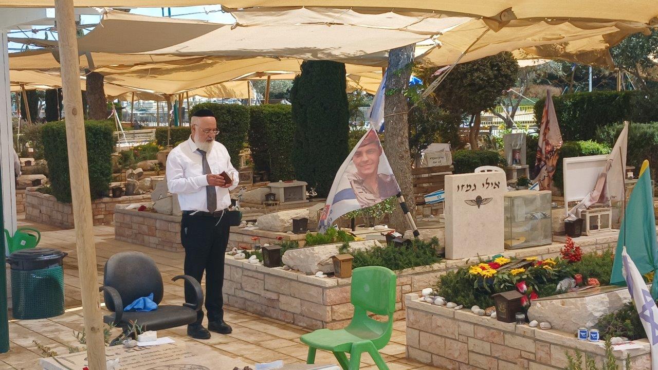 קודם צאתו נכנס לחלקה הצבאית, שם התעכב ליד קברי החללים הקדושים ז"ל וקרא מזמורי תהילים לעילוי נשמתם ואמר אשכבה.