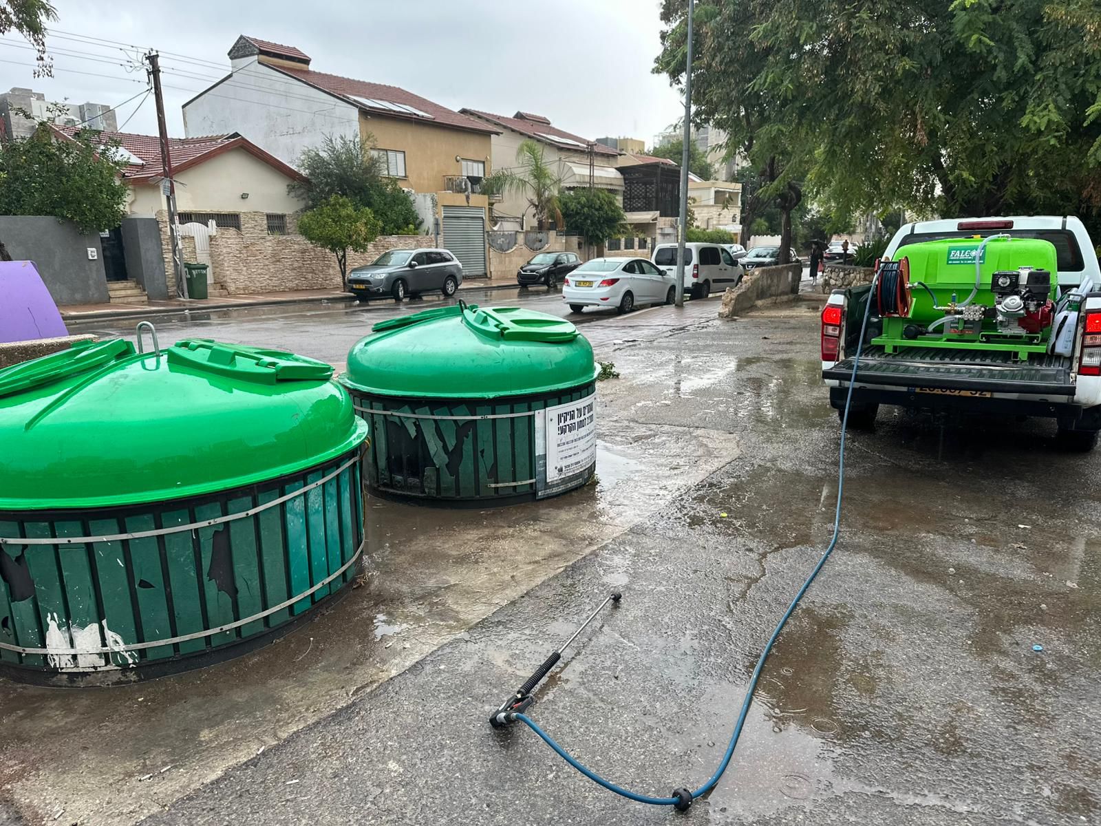 מגבירים את רמת הניקיון בעיר: שלושה צוותים פועלים במקביל לשטיפת מתקני טמוני האשפה