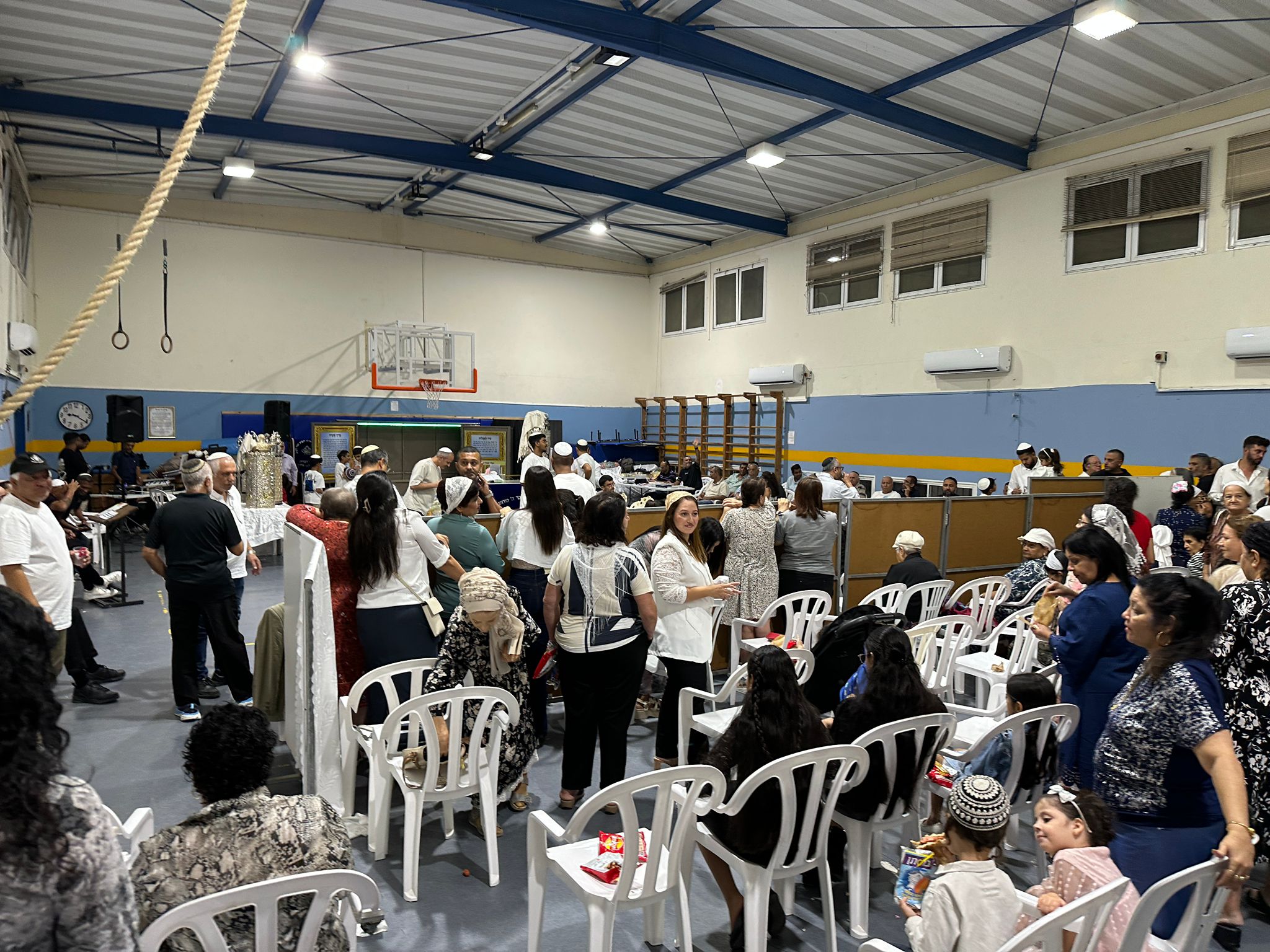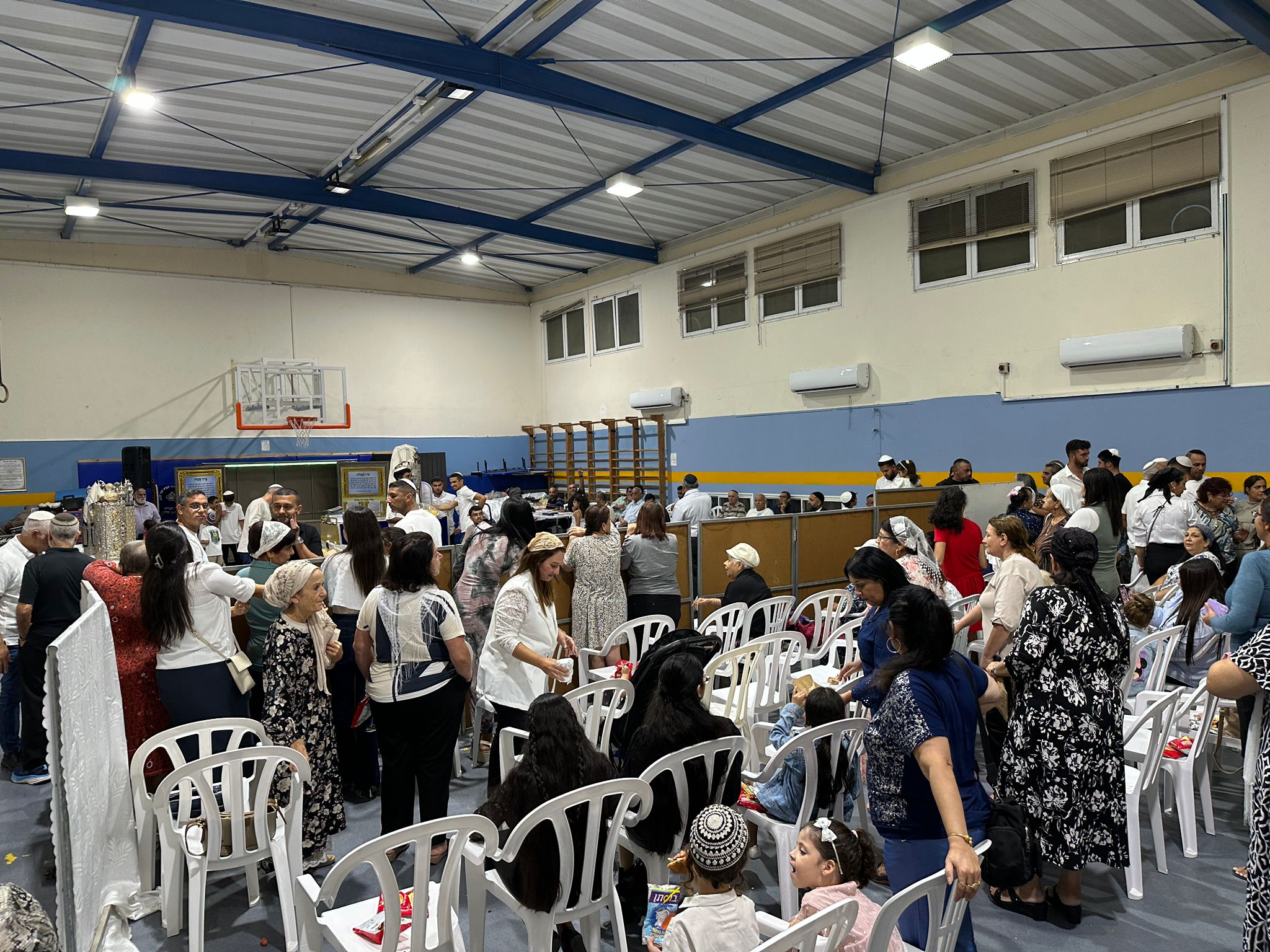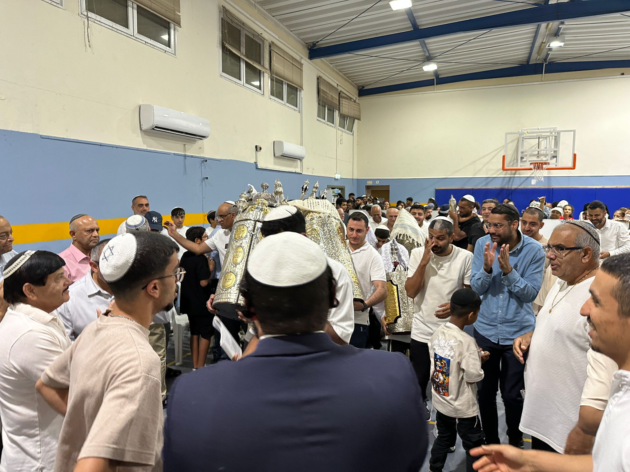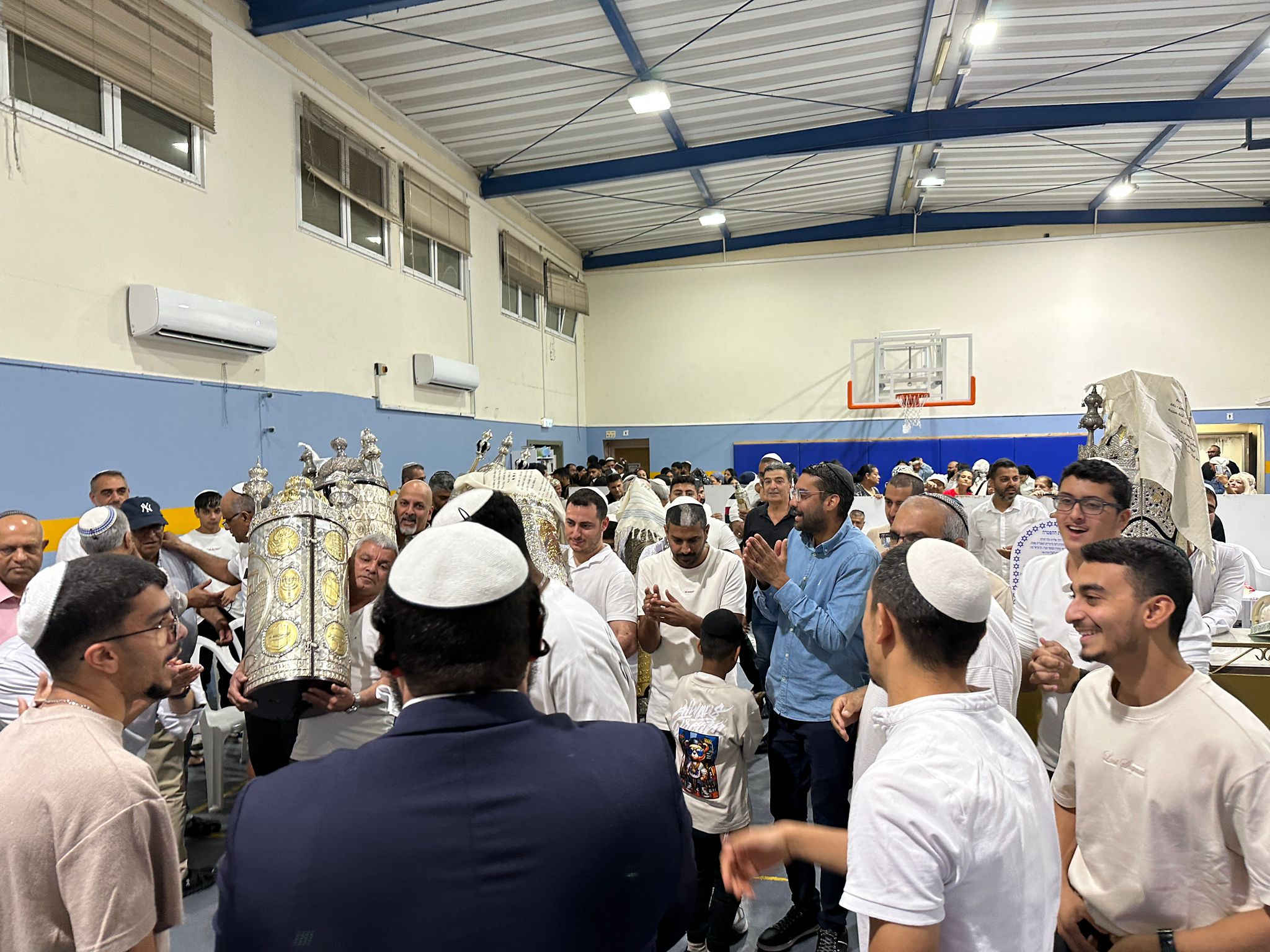 בבית הכנסת “ברכת השם” שבאזור י״א, השייך לקהילה ההודית באשדוד, נערך ערב הקפות שניות מרגש במיוחד – למרות שבית הכנסת עדיין נמצא בשלבי בנייה