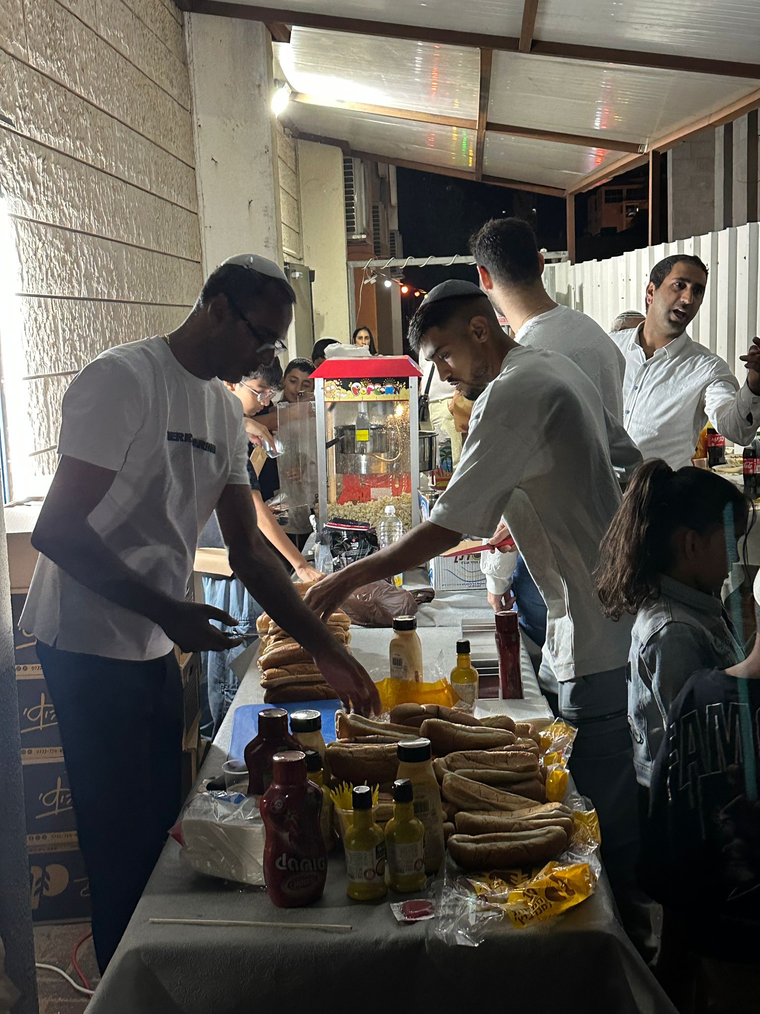 המתפללים ובני הקהילה נרתמו כולם להצלחת האירוע: הם סייעו, תרמו, הכינו ודאגו לכל פרט ופרט. ילדי בית הכנסת לקחו חלק פעיל והפעילו עמדות של פופקורן, סוכר, ונקניקייה בלחמנייה – לצד כיבוד עשיר לכל הקהל הרחב. במהלך כל הערב חולקו מתנות, מתוקים והפתעות לכל הילדים, באירוע מלא שמחה ואהבה – כולו ללא כל עלות לציבור, בזכות נדיבותם של מתפללי בית הכנסת ואנשי הוועד, ללא כל סיוע מגורם חיצוני.