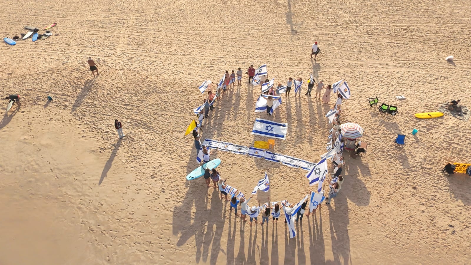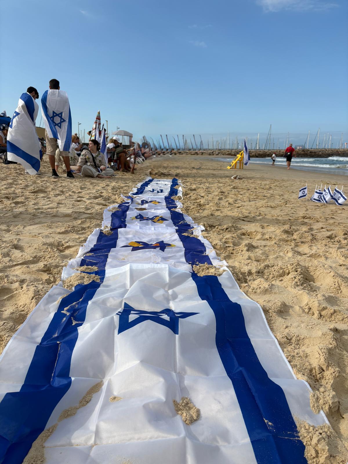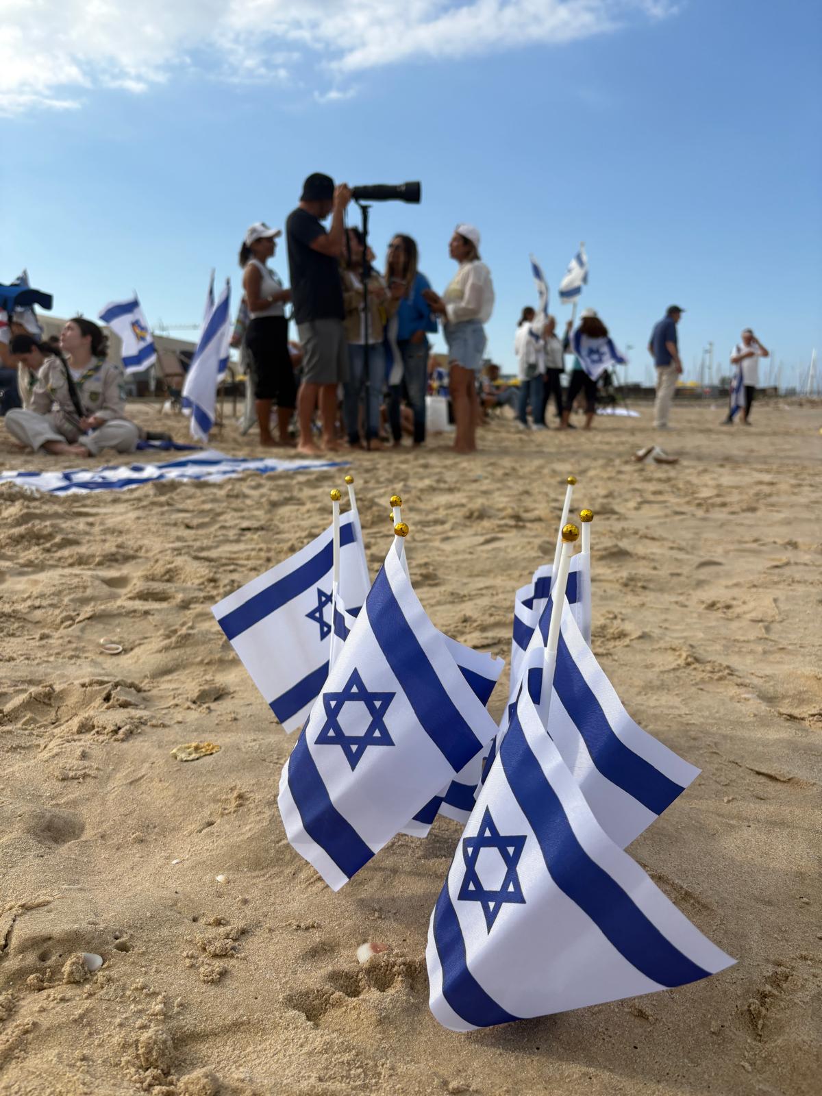 בין הדגלים, הבלונים והשלטים שנשאו המשתתפים, ניכרה התחושה שכל העיר, לב של עם שלם, פועם באותו קצב של תפילה, געגוע והודיה. תושבים רבים הביאו עמם תמונות, דגלים ופרחים, הדליקו נרות ושרו יחד שירי תקווה ואחדות. הילדים ציירו לבבות על החול, והאוויר היה ספוג בתחושת סולידריות עמוקה ותחושת שליחות משותפת. המיצג נחתם בתפילה מרגשת לשלומם של כלל החטופים שעדיין לא שבו, ובאמירה אחת מאוחדת של הקהל: “יחד נחזיר את כולם הביתה". צילום רחפן: גל שמיר