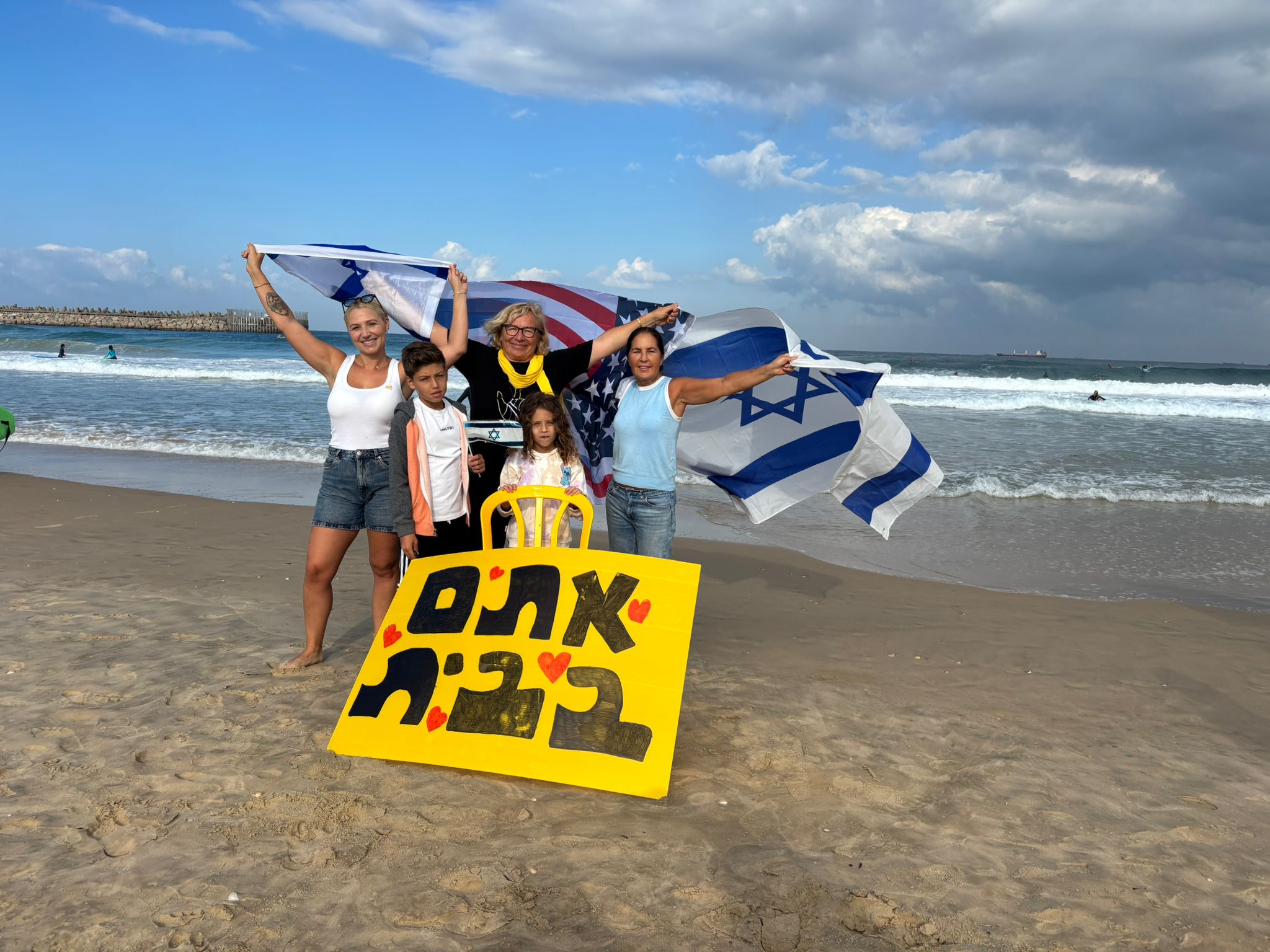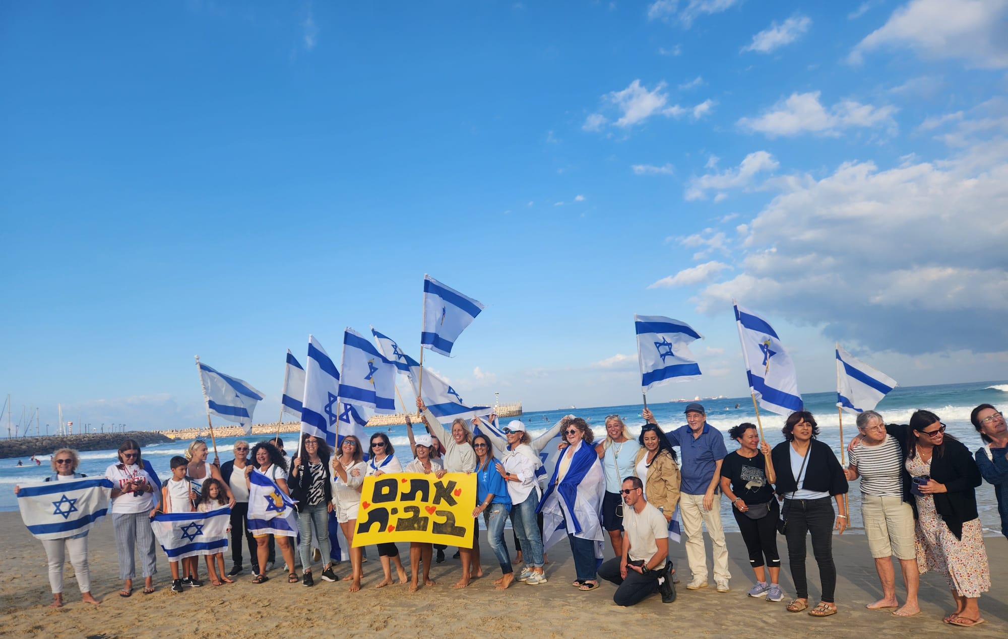 לב אחד בחוף הקשתות: אשדוד עם החטופים החוזרים (וידאו)
