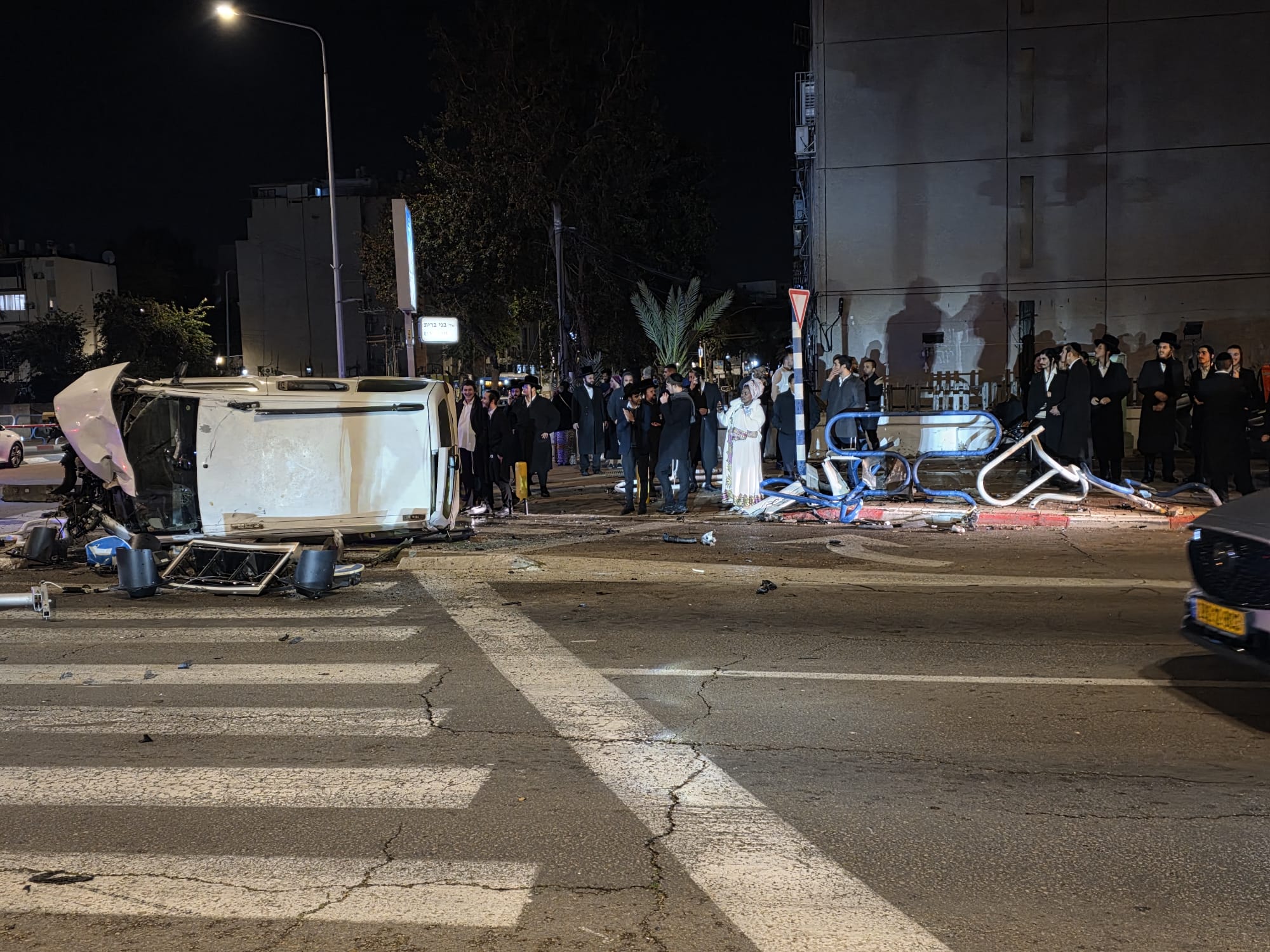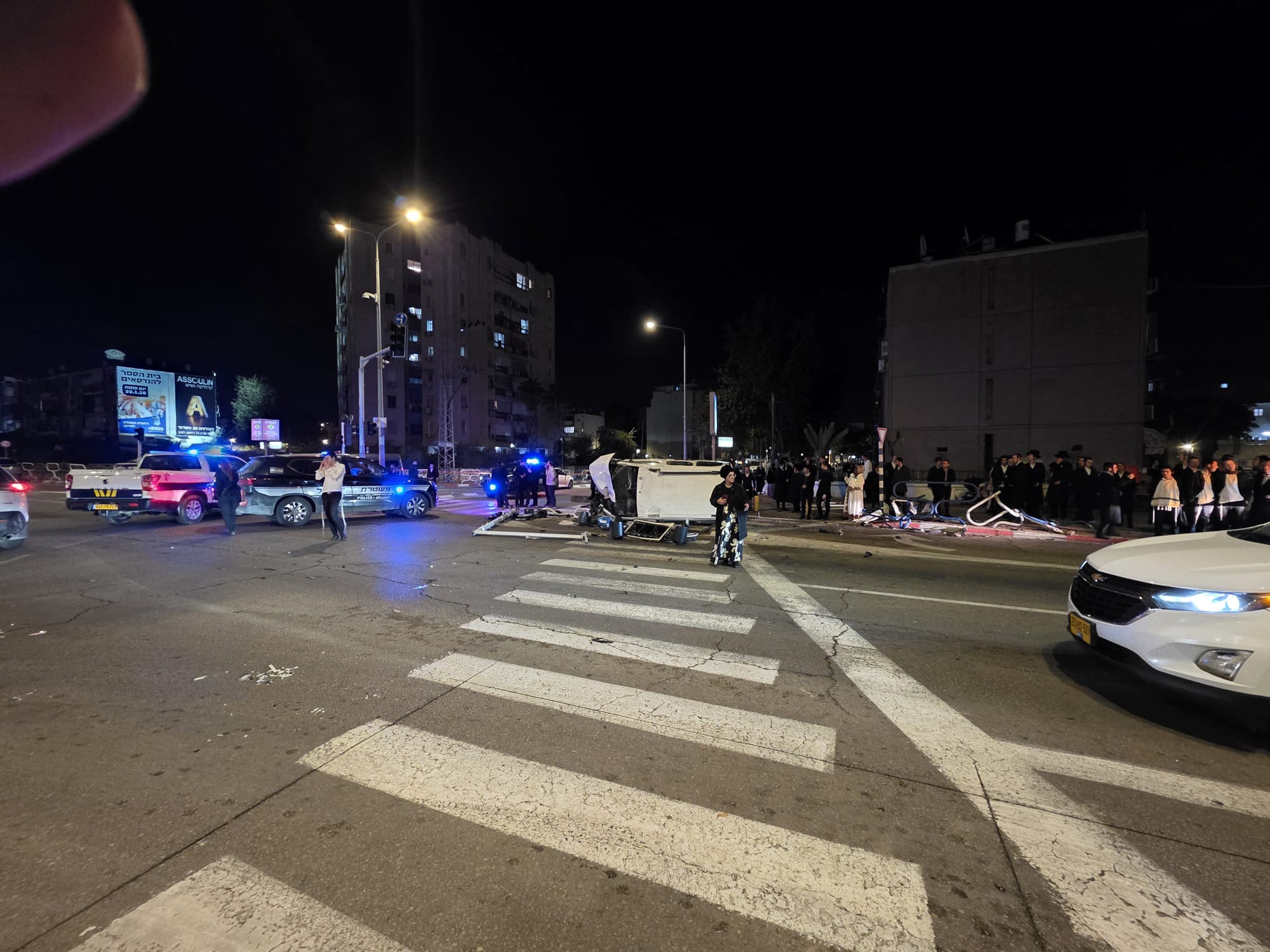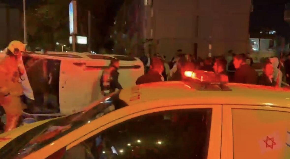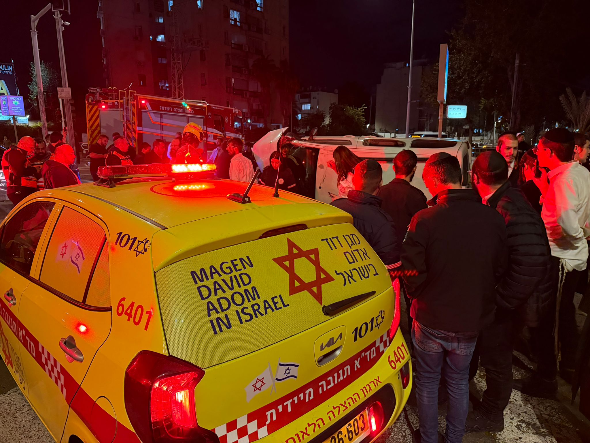 רכב הפוך בתאונת דרכים בשדרות בני ברית פינת הפלמ״ח באשדוד