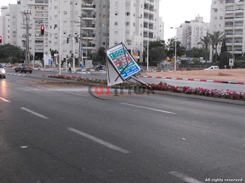 בשעות הערב של יום שישי התרחשה תאונה בשדרות הרצל - בן עמי, בתוך השטח הסטרילי. מסיבה שאינה ברורה עדיין, סטה רכב מסוג פיאט לבנה, עלה על אי התנועה, פגע בשלט הכוונה ועף לנתיב הנגדי. במזל גדול, באותה העת לא הייתה תנועה בנתיב הנגדי וכך למעשה נמנעה תאונה קשה יותר.