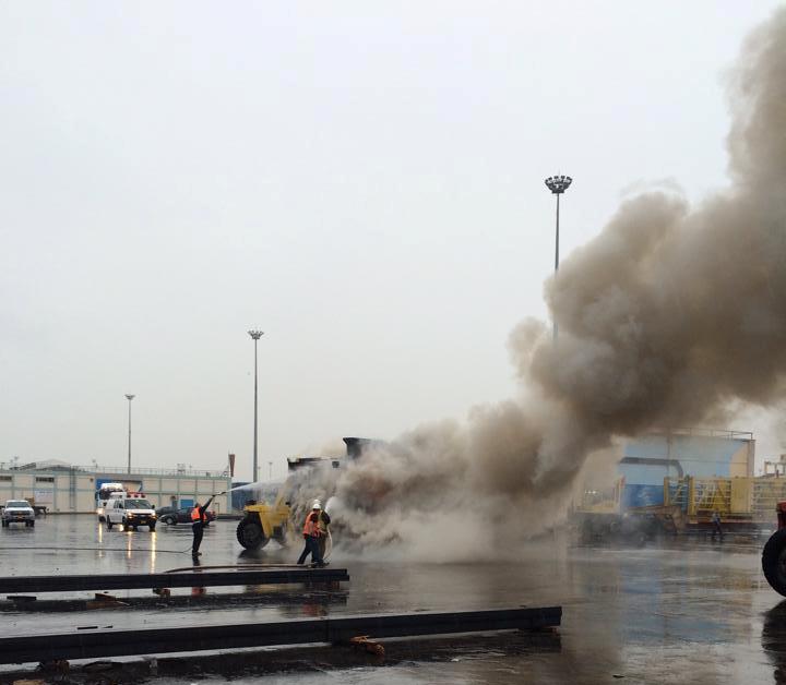 מלגזה עלתה באש בנמל אשדוד (תמונות)