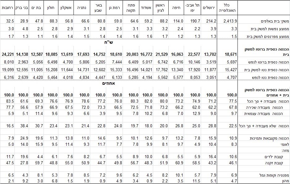הרכב למשק בית ב-14 הערים הגדולות, 2015