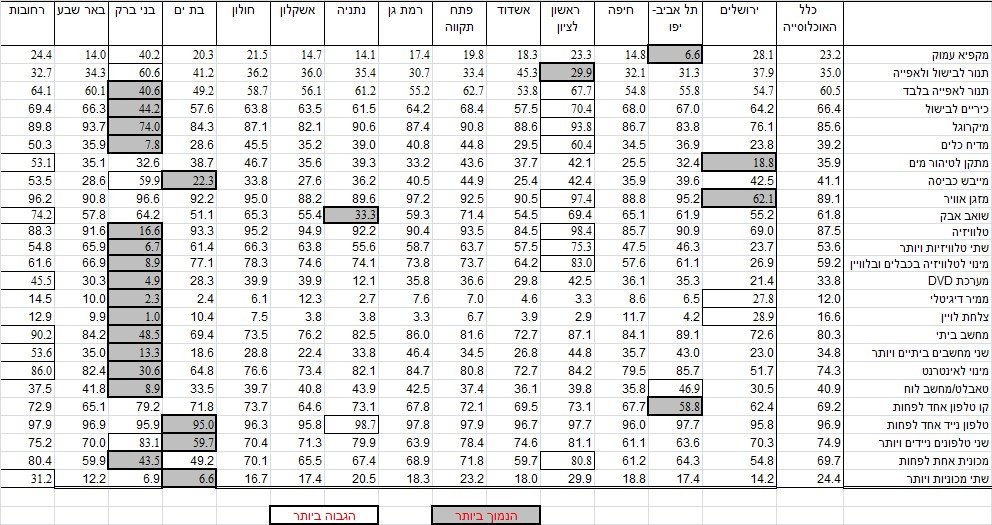 כמה גרים באשדוד בשעירות? כמה מחזיקים 2 רכבים? כמה אנחנו מוציאים על מזון ועוד.