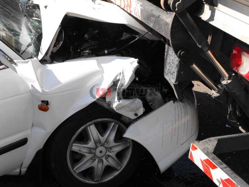 מעוצמת הפגיעה נמעך כל חלקו הקדמי של הרכב. באותה העת היו ברכב שני בני אדם שנפצעו בנס גדול רק באורח קל.
