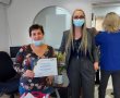אות הוקרה למטפלת הסיעודית הוותיקה מאשדוד על מסירותה בעבודה עם קשישים